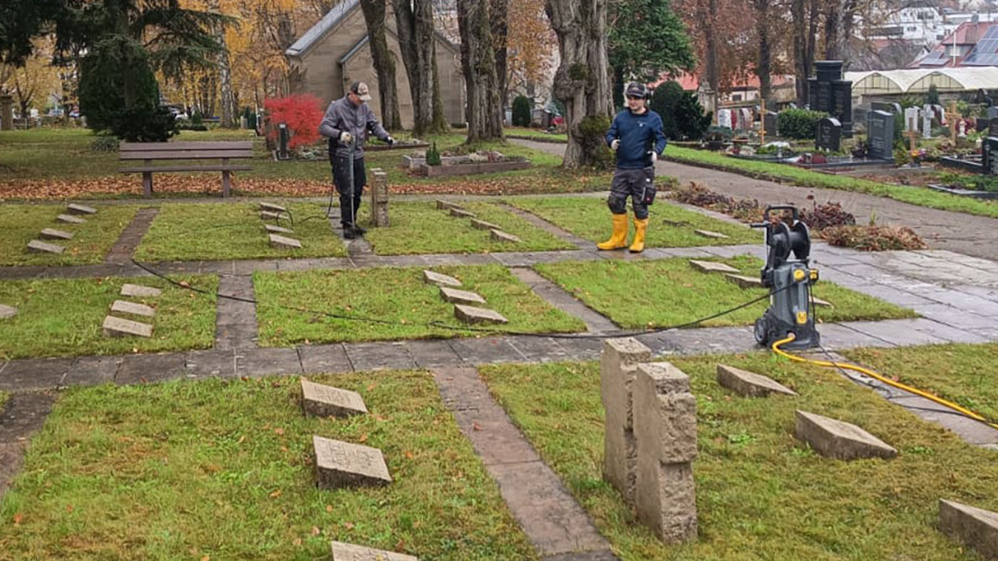 Der November ist eine Zeit der Erinnerung an die Toten und des verstärkten Besuchs der Friedhöfe. Zum Totensonntag werden die Gräber der verstorbenen Familienangehörigen von den Hinterbliebenen für den Winter hergerichtet. In Vorbereitung des Volkstrauertags hat die Steinwerkstätte Wenzler & Vogt auf dem Backnanger Stadtfriedhof in ehrenamtlicher Arbeit einige Grabsteine gereinigt, um die Inschriften wieder lesbar zu machen.