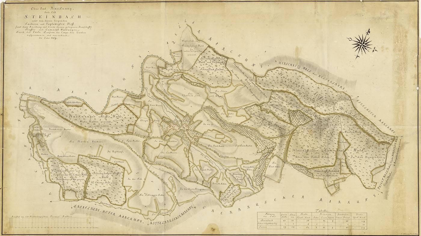 Neue Erkenntnisse zur Geschichte des Eschelhofs legt Gerhard Fritz vor. War die erste urkundliche Erwähnung bisher für das Jahr 1475 bekannt, was also vor 550 Jahren war, hat Gerhard Fritz nun eine noch ältere Urkunde gefunden. Mit einer Urkunde aus dem Jahr 1335 steht nun 2035 das 700-jährige Jubiläum an. In dieser anlässlich eines Eigentümerwechsels angefertigten Urkunde wird der Eschelhof, der zwischendurch auch Nestelhof hieß, übrigens als Eschelbach bezeichnet. Gerhard Fritz geht in seinem Aufsatz einen ungewöhnlichen Weg: er rollt die spannende Geschichte des Eschelshof mit einer Zugehörigkeit zur Grafschaft Löwenstein und gleichzeitigen Abhängigkeit vom Kloster Murrhardt im Mittelalter gegenchronologisch auf. Das bedeutet, er geht von der Gegenwart in die Geschichte zurück. Fritz zeigt nicht nur auf, dass der Eschelhof früher aus vier Bauernhöfen bestand und untersucht, warum diese im 19. Jahrhundert vom Staat übernommen wurden, sondern er behandelt auch die unterschiedlichen landwirtschaftlichen Nutzungen im Laufe der Geschichte. Der Eschelhof lag nicht immer mitten im Wald. Fritz kann bis in das 18. Jahrhundert Weinbau nachweisen.