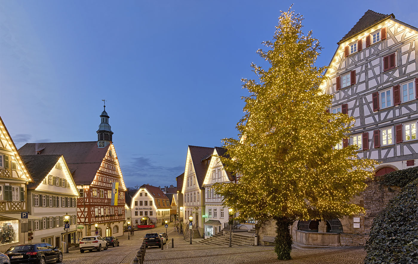 Es nahte die Weihnachtszeit. Auch 1875 war das Weihnachtsgeschäft für den Einzelhandel interessant. Verschiedene Geschäfte bewarben ihre Produkte mit Anzeigen in der Zeitung Murrthal-Bote. Kaufmann J. Schöllhammer bot an: „Zu passenden und nützlichen Weihnachtspräsenten erlaube ich mir eine große Auswahl in seidenen, Zanella- und Alpaca-Regenschirmen höflichst zu empfehlen und sichere bei guter Waare die billigsten Preise zu.“ Kaufmann David Stelzer bot Filzschuhe und Stiefeletten an. Die originale Schreibweise mag für uns heute ungewohnt anmuten: „Mein Lager in fertigen Schuhwaren ist auch für diesen Winter aufs Beste sortirt, und empfehle Herrenstiefel und Stiefeletten, für Damen Lasting-, Seehund-, Kidt- und Kalblederstiefelchen.“ Kidleder ist ein weiches Ziegenleder.