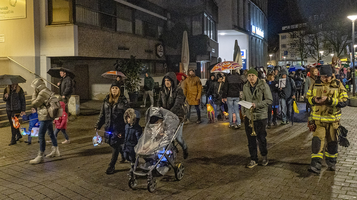 und wir singen typische Laternen- und Martinslieder. Der Umzug endet am Biegel, vor dem Seniorenbüro. Da erwartet die Kinder ein Gebäck, das traditionell der Gewerbeverein sponsert und Kinderpunsch.