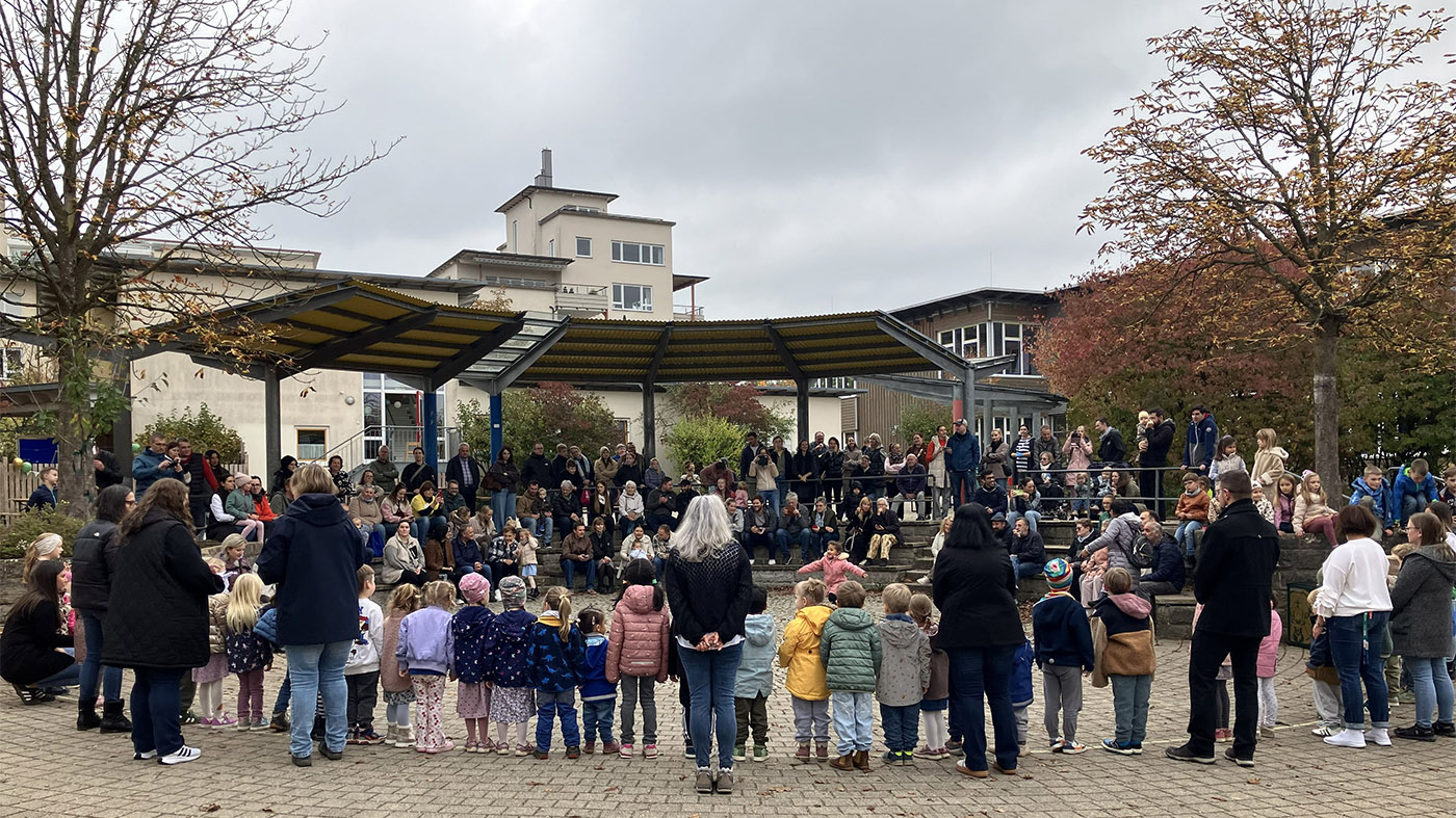 Die Feier begann auf dem Schulhof der Grundschule Maubach mit einem Lied der Kinder. Danach sprach Sozial- und Kulturdezernentin Regine WĂŒllenweber und wĂŒrdigte die pĂ€dagogische Arbeit sowie die naturverbundene Ausrichtung der seit 2023 zertifizierten Naturpark-Kita. Als Geschenk brachte sie einen Baum und passende BĂŒcher mit.